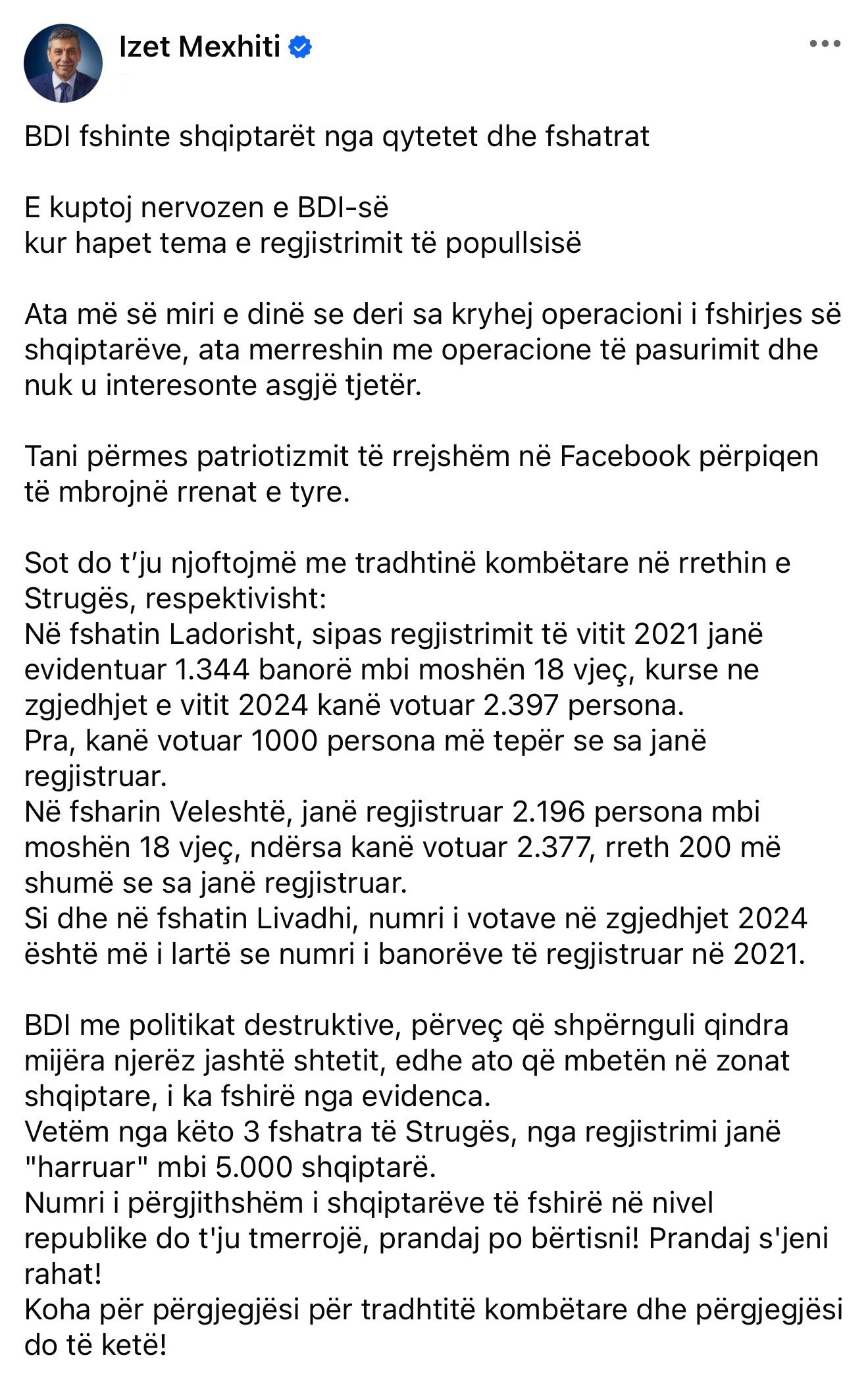 “Në politikën ditore mund të ketë kritika, por kur sillet një ligj që garanton përfaqësim të drejtë, atëherë pres reflektim dhe bashkim. Uroj që opozita të reflektojë dhe ta përkrahë të mirën,” përfundoi Mexhiti.